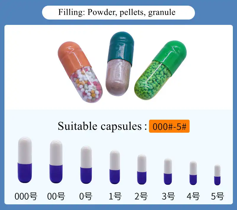 Capsule size: #00, #0, #1, #2, #3, #4, #5